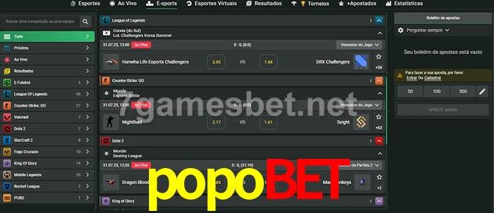 O popobet oferece uma grande seleção de opções de apostas em e-sports com probabilidades competitivas